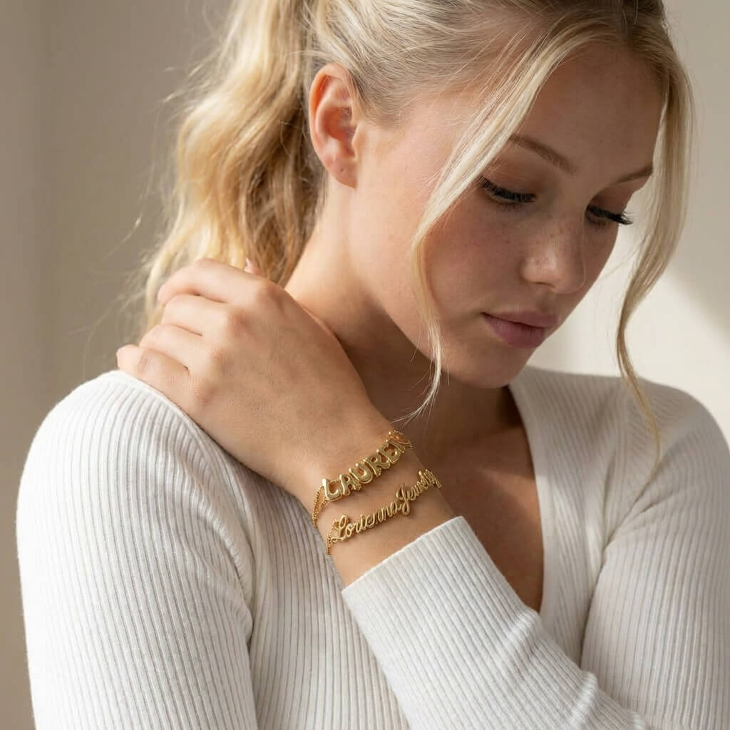Playful, personal, and effortlessly on-trend, the Bubble Name Adjustable Chain Bracelet is designed to make your everyday style feel uniquely yours. Featuring rounded bubble-style letters set across dual box chains, this bracelet brings a bold yet polished look that’s easy to wear and impossible to miss. Finished with an adjustable pull-tie fit, it’s perfect worn solo or stacked your go-to piece for adding personality with a modern edge.