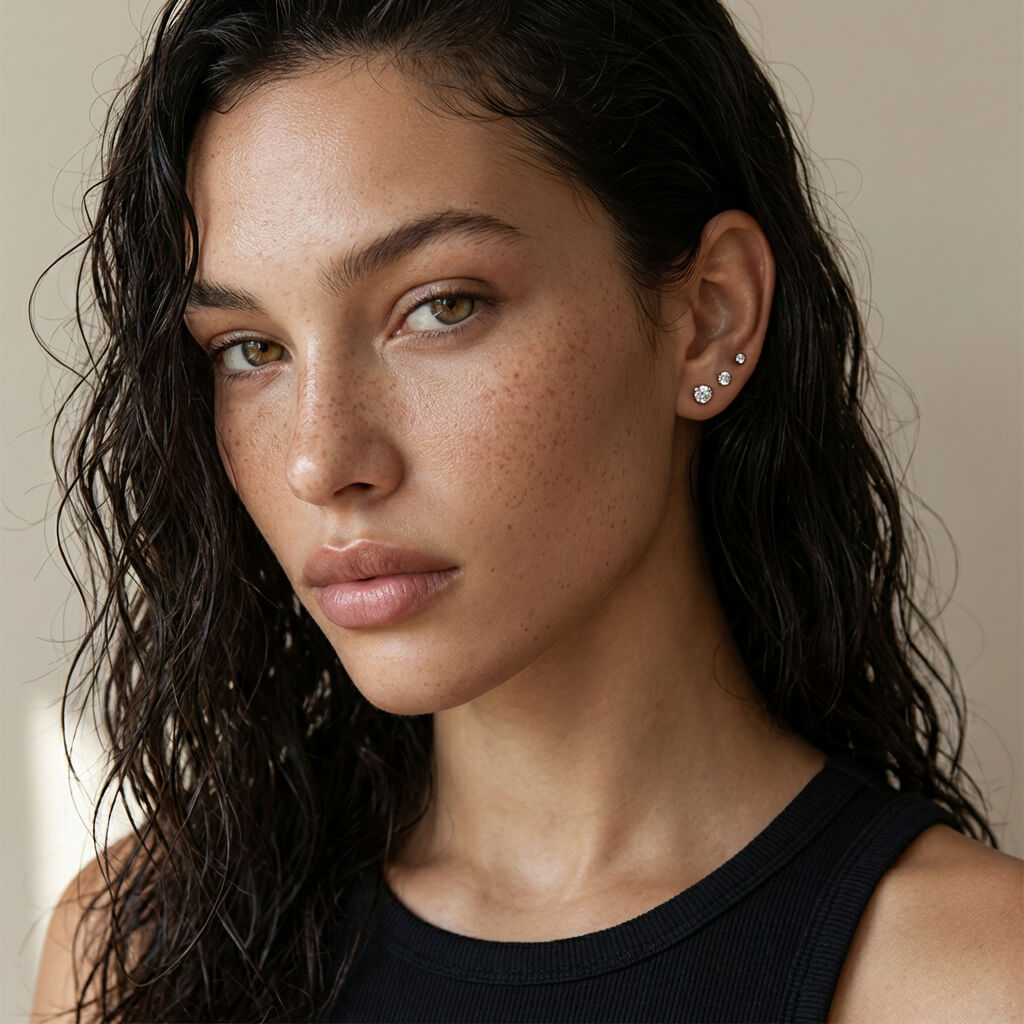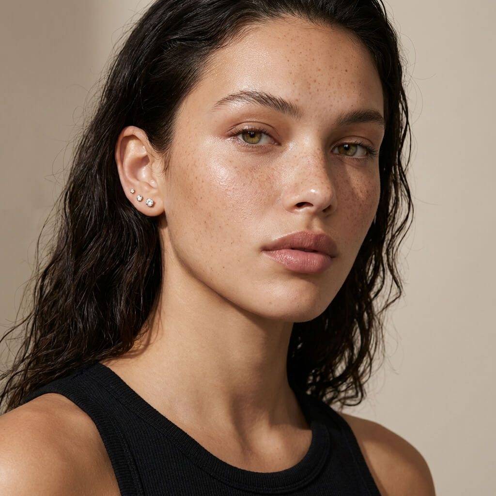 Clean, refined, and effortlessly versatile, these diamond flat back studs are designed to elevate everyday style with subtle brilliance. The classic sparkle feels timeless whether worn alone or layered into a curated ear look, while the flat back design offers a secure, comfortable fit you can rely on all day. Polished and understated, they’re an essential piece made to move seamlessly from casual wear to elevated moments.