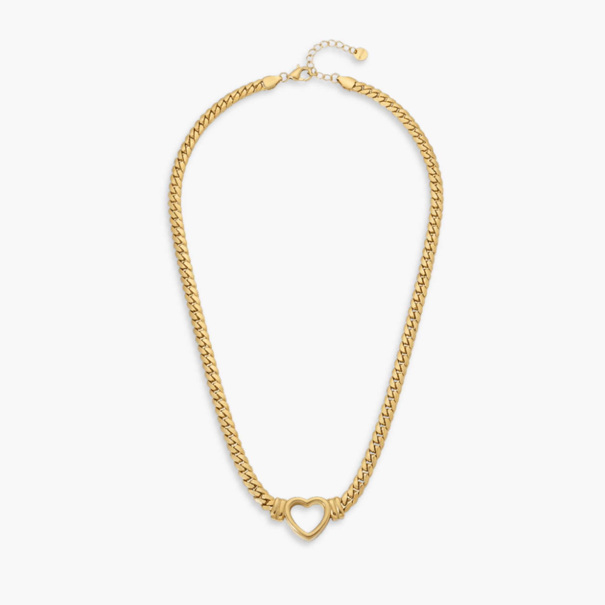 This heart chain choker is defined by clean lines and a minimal silhouette, featuring a subtle heart detail centered along a structured chain. Designed to sit neatly at the neckline, the piece delivers understated elegance with a modern edge, making it easy to style alone or layered with longer chains. Its refined design offers a quiet statement that feels effortless for everyday wear.