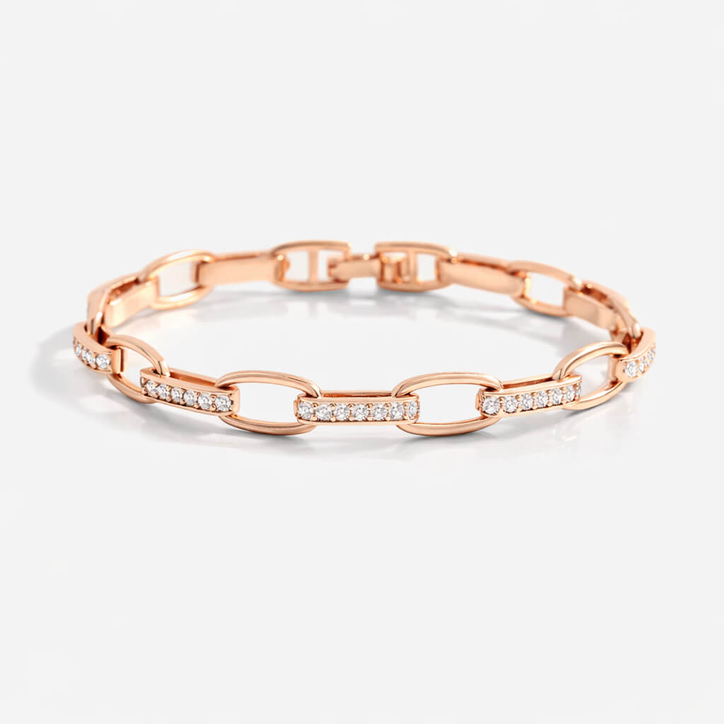 Designed to balance modern edge with timeless sparkle, this interlinked diamond paperclip bracelet makes a confident yet refined statement. The structured links are elevated with subtle diamond accents that catch the light beautifully, giving the piece an effortless sense of polish. Easy to wear on its own or layered with your everyday favorites, it transitions seamlessly from casual looks to dressed-up moments with understated elegance.