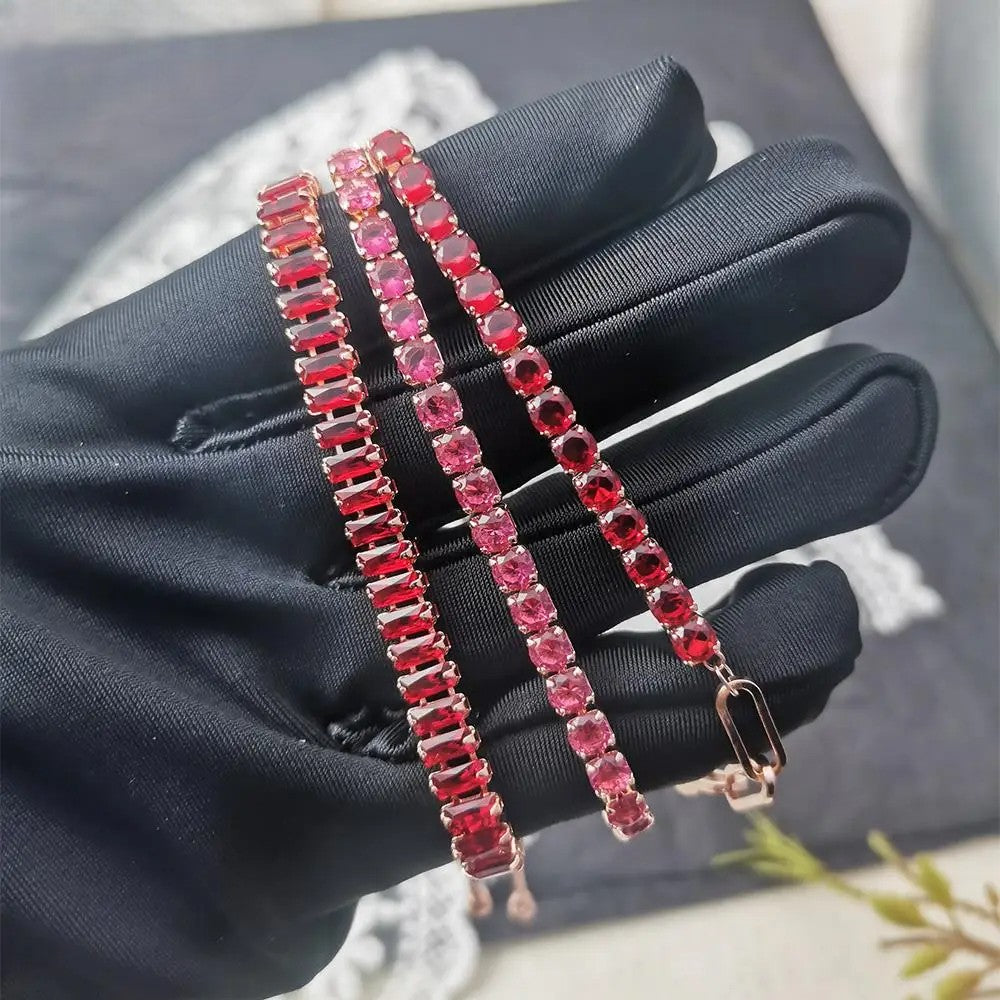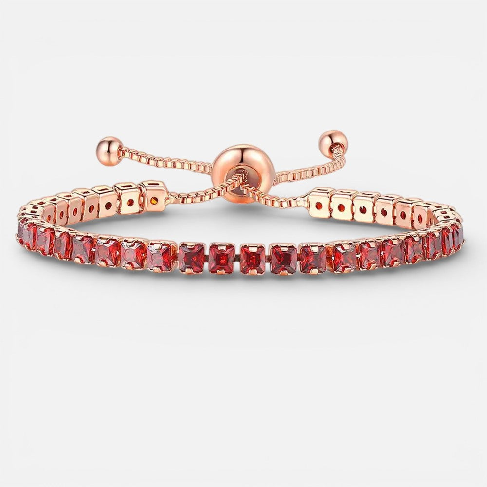 Bold lines meet refined sparkle in this square cut red crystal tennis bracelet. The clean, geometric stones create a modern look that feels polished and confident, while the slim profile keeps it effortless enough for everyday wear. Designed to stand out on its own or layer seamlessly with your favorites, it’s a statement piece with timeless appeal.