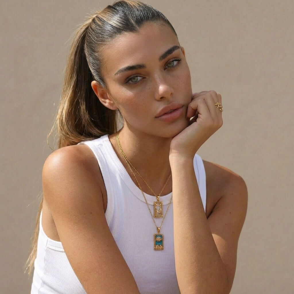 This square tarot card necklace is designed to carry meaning beyond style. Inspired by iconic tarot symbols, each pendant represents a different energy from intuition and love to creativity and growth. With its clean, modern shape and symbolic depth, it’s a piece that feels personal, intentional, and effortlessly expressive. Easy to wear every day yet rich in meaning, it’s perfect for layering or wearing solo as a subtle statement.
