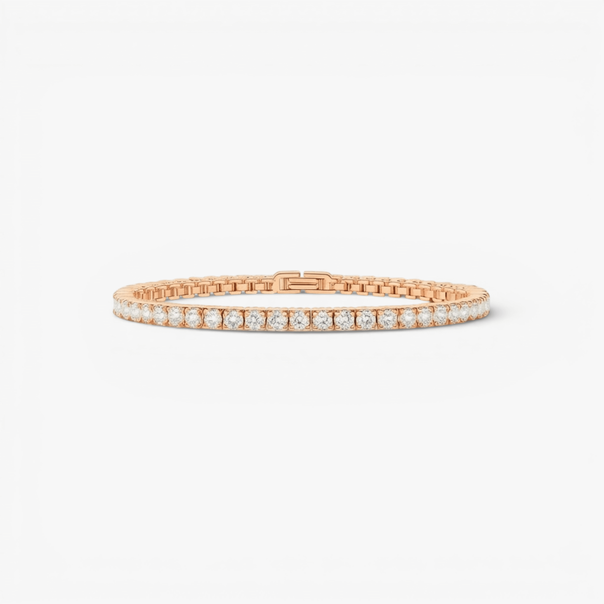 This classic tennis chain bracelet features a continuous row of zircon stones set in a clean, geometric design. Balanced and understated, it offers a timeless look that works well for everyday wear or special occasions. Designed to sit comfortably on the wrist, it can be worn alone for a refined finish or layered with other bracelets for added dimension.