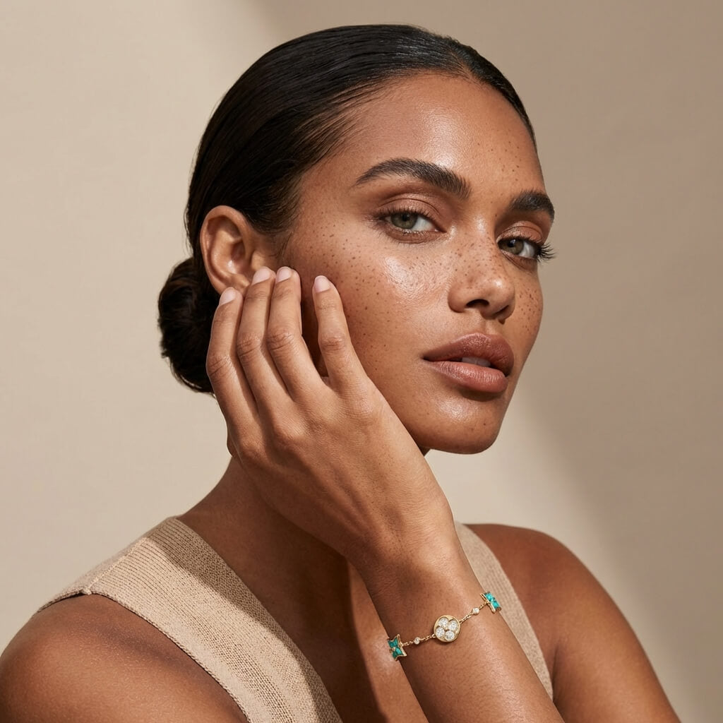Fresh, vibrant, and effortlessly elegant, the Color Blossom Amazonite Bracelet brings a natural pop of color to your everyday style. Designed with alternating floral-inspired motifs, this piece blends soft green amazonite tones with subtle sparkle for a look that feels refined yet lively. Whether worn solo or layered with your favorites, it adds a graceful statement that transitions seamlessly from daily wear to special occasions.