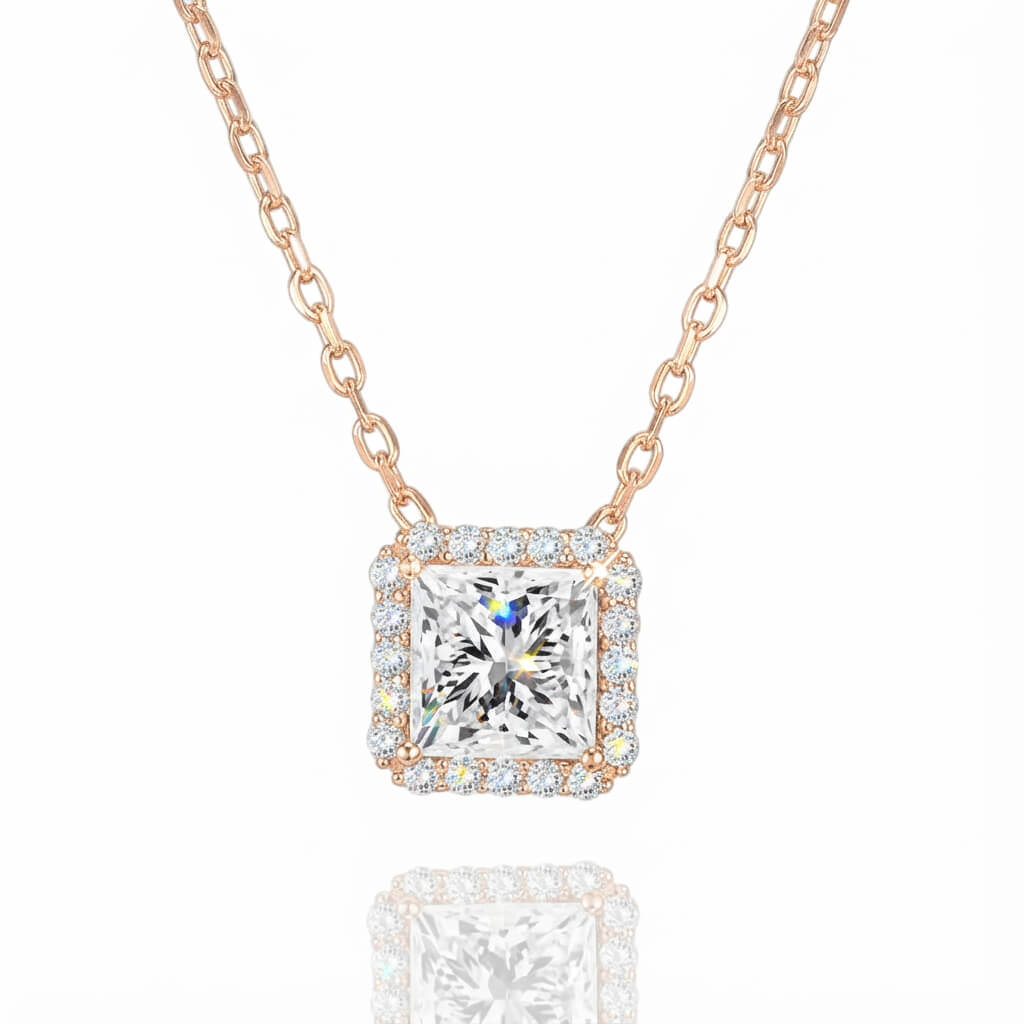 Square Halo Pendant Necklace