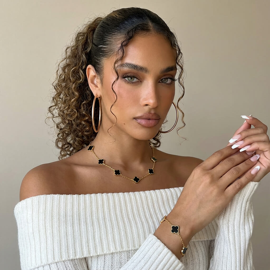 Lucky Clover Pendant Necklace – Long Chain