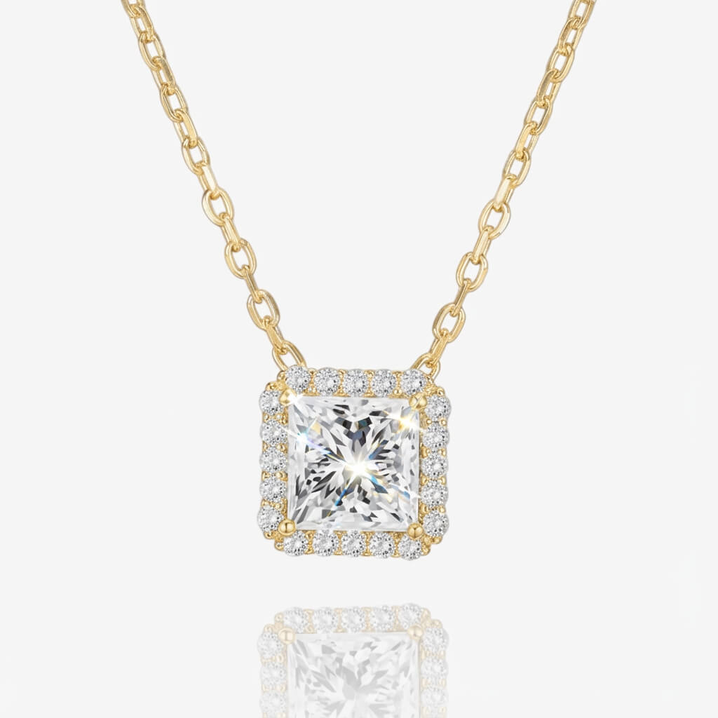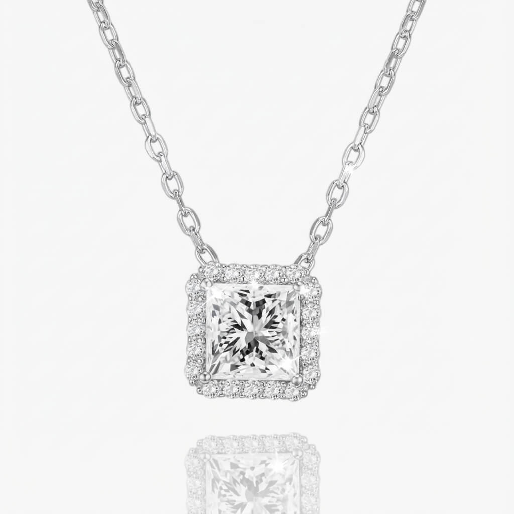 Square Halo Pendant Necklace