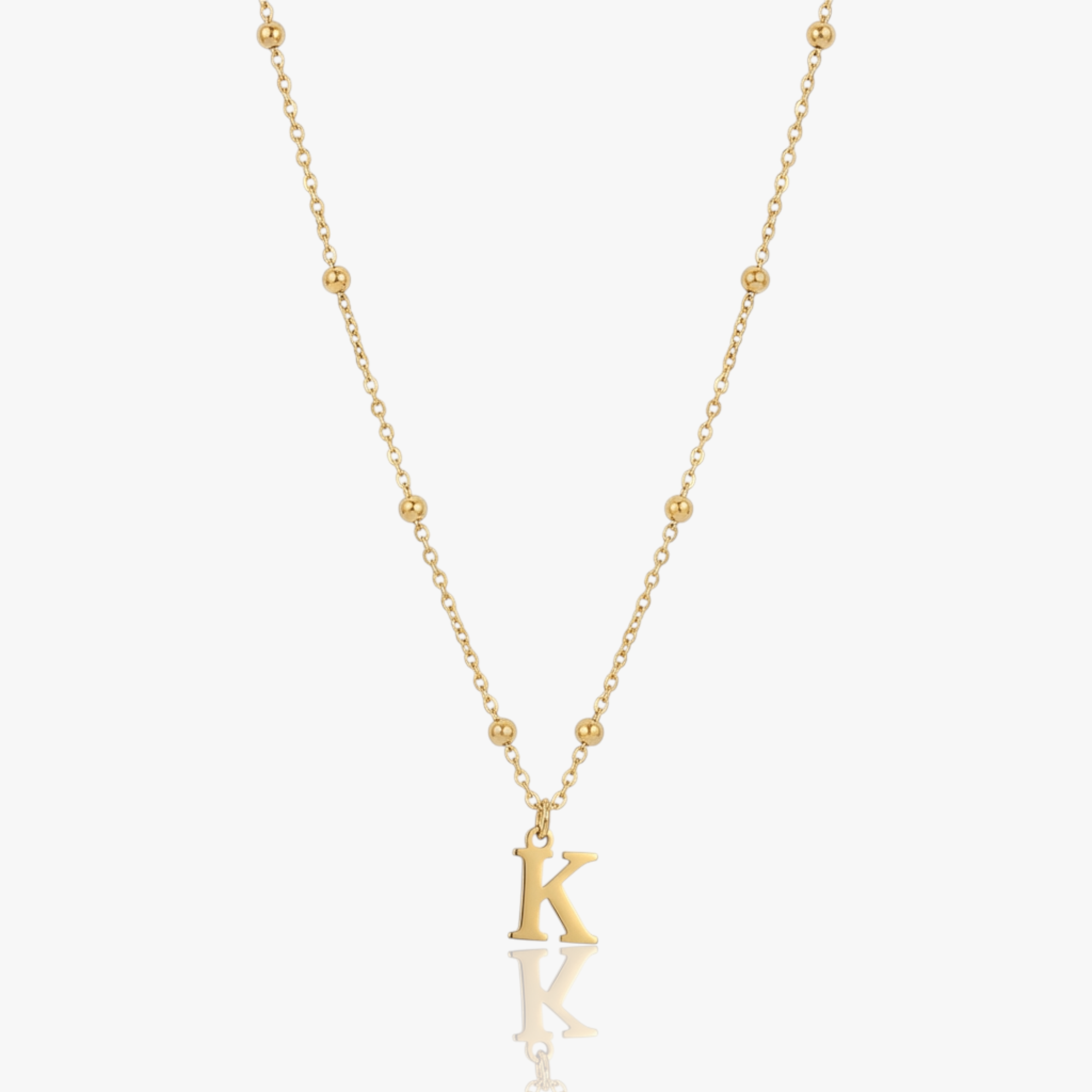 This dainty satellite chain necklace features a single serif letter initial suspended along a fine beaded chain, creating a clean and personal focal point at the neckline. The balanced spacing of the satellite beads adds subtle texture, while the initial pendant keeps the design simple and intentional. Easy to wear on its own or layered with other necklaces, this piece offers a quiet way to add a personalized detail to everyday styling.