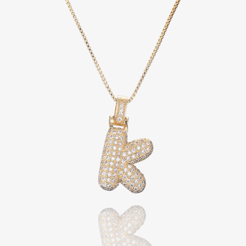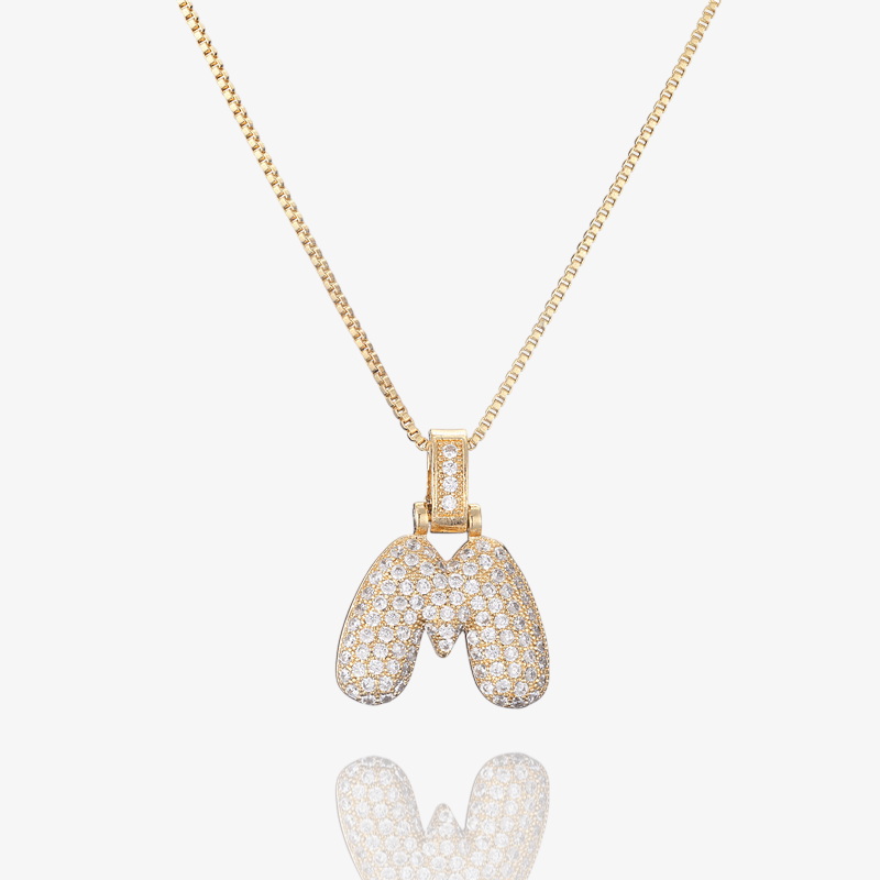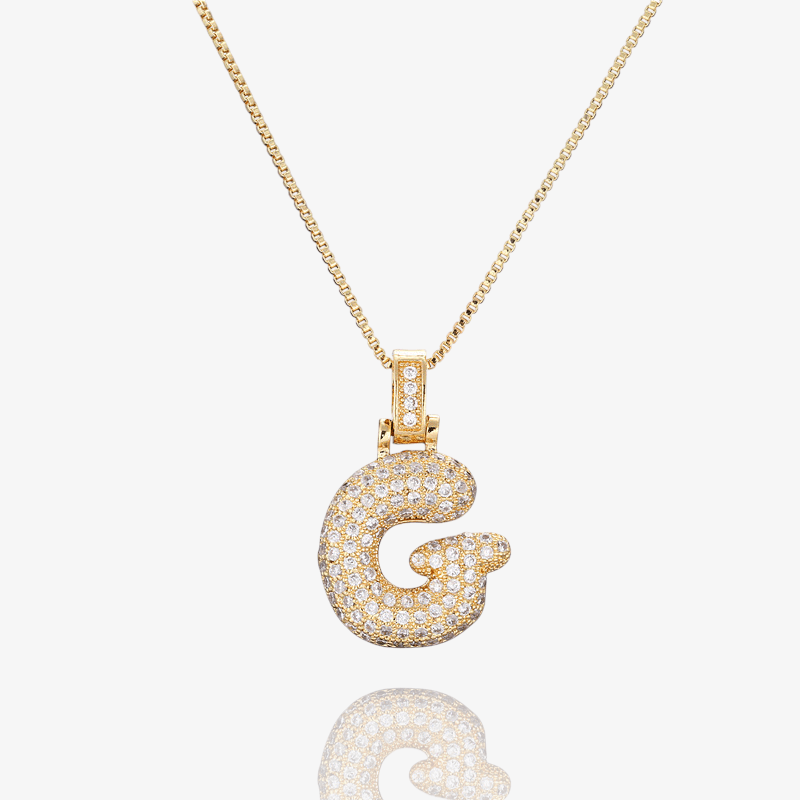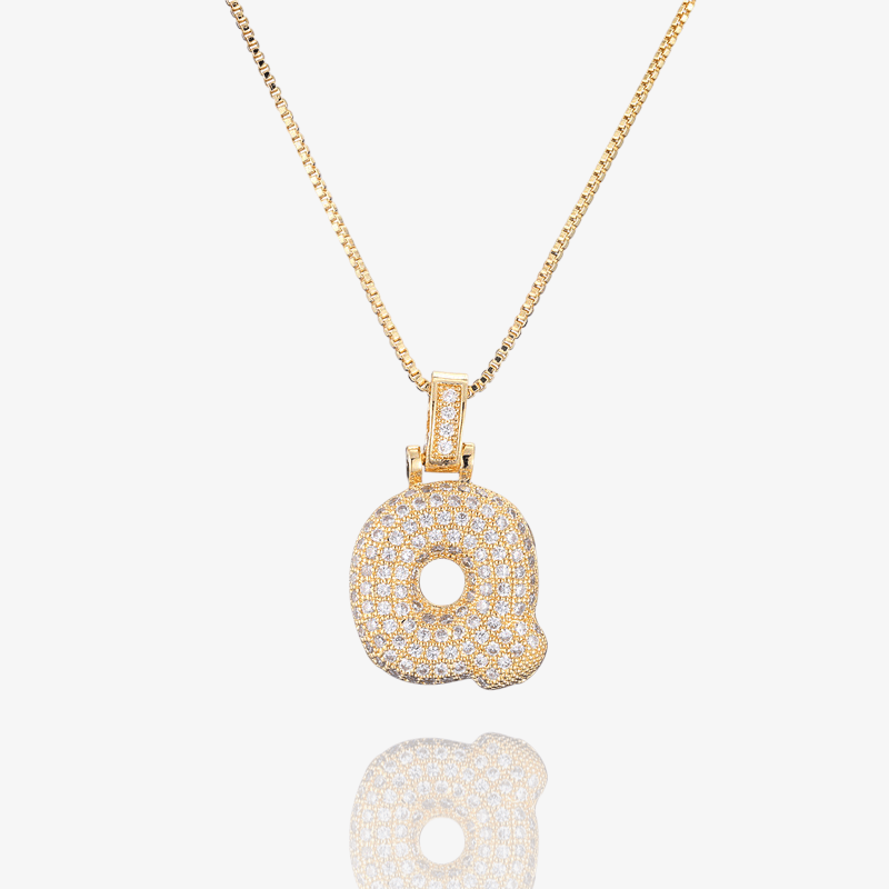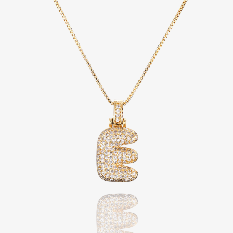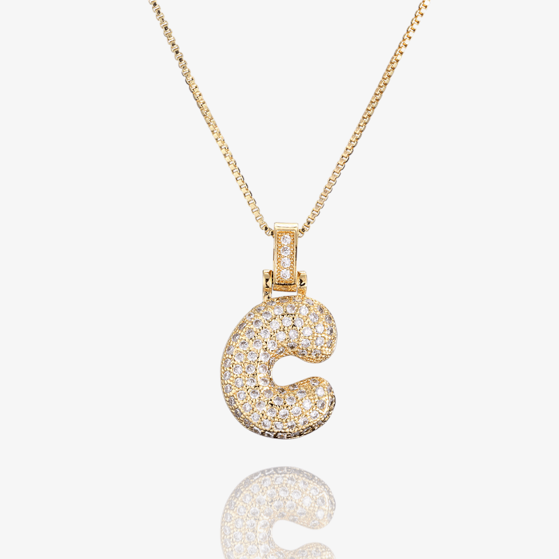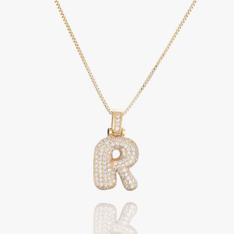 This bold initial necklace features a rounded bubble-style letter fully set with sparkling zircon stones, designed to stand out while remaining easy to wear. The compact silhouette and high-shine finish create a strong visual presence that works equally well worn alone or layered with other chains. Designed for everyday styling, it offers a personalized statement that feels confident, modern, and expressive without overwhelming your look.