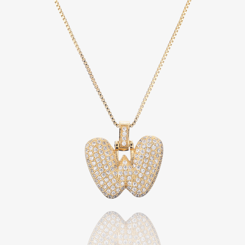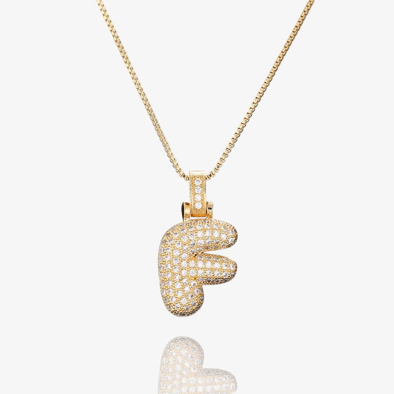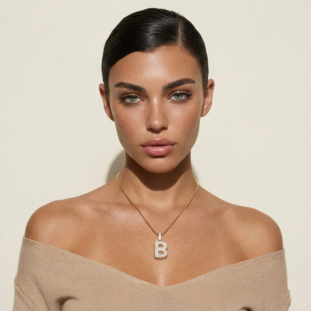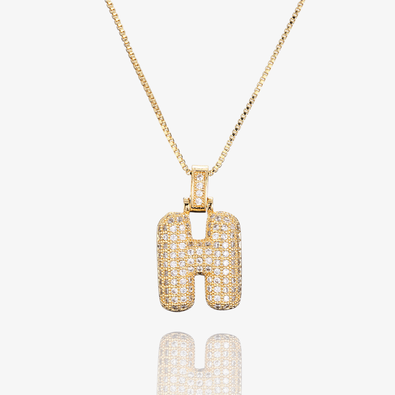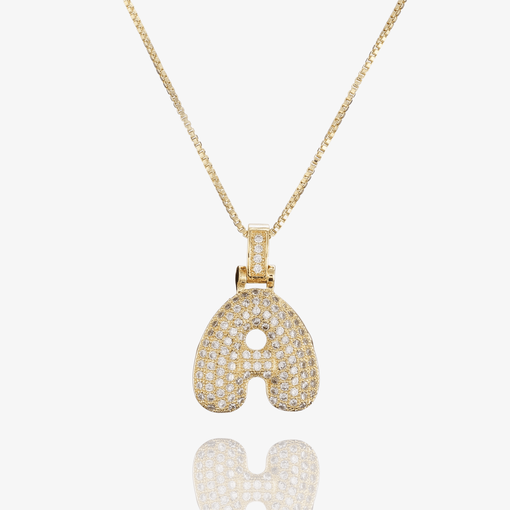 This bold initial necklace features a rounded bubble-style letter fully set with sparkling zircon stones, designed to stand out while remaining easy to wear. The compact silhouette and high-shine finish create a strong visual presence that works equally well worn alone or layered with other chains. Designed for everyday styling, it offers a personalized statement that feels confident, modern, and expressive without overwhelming your look.