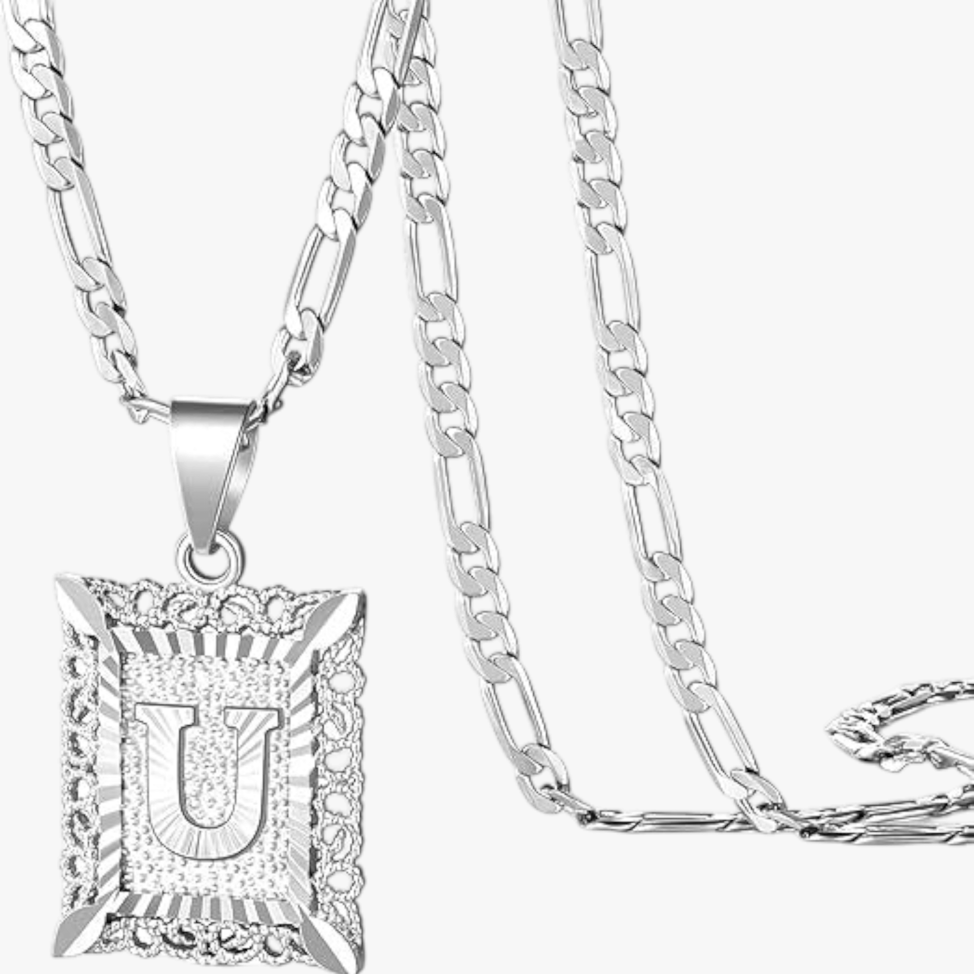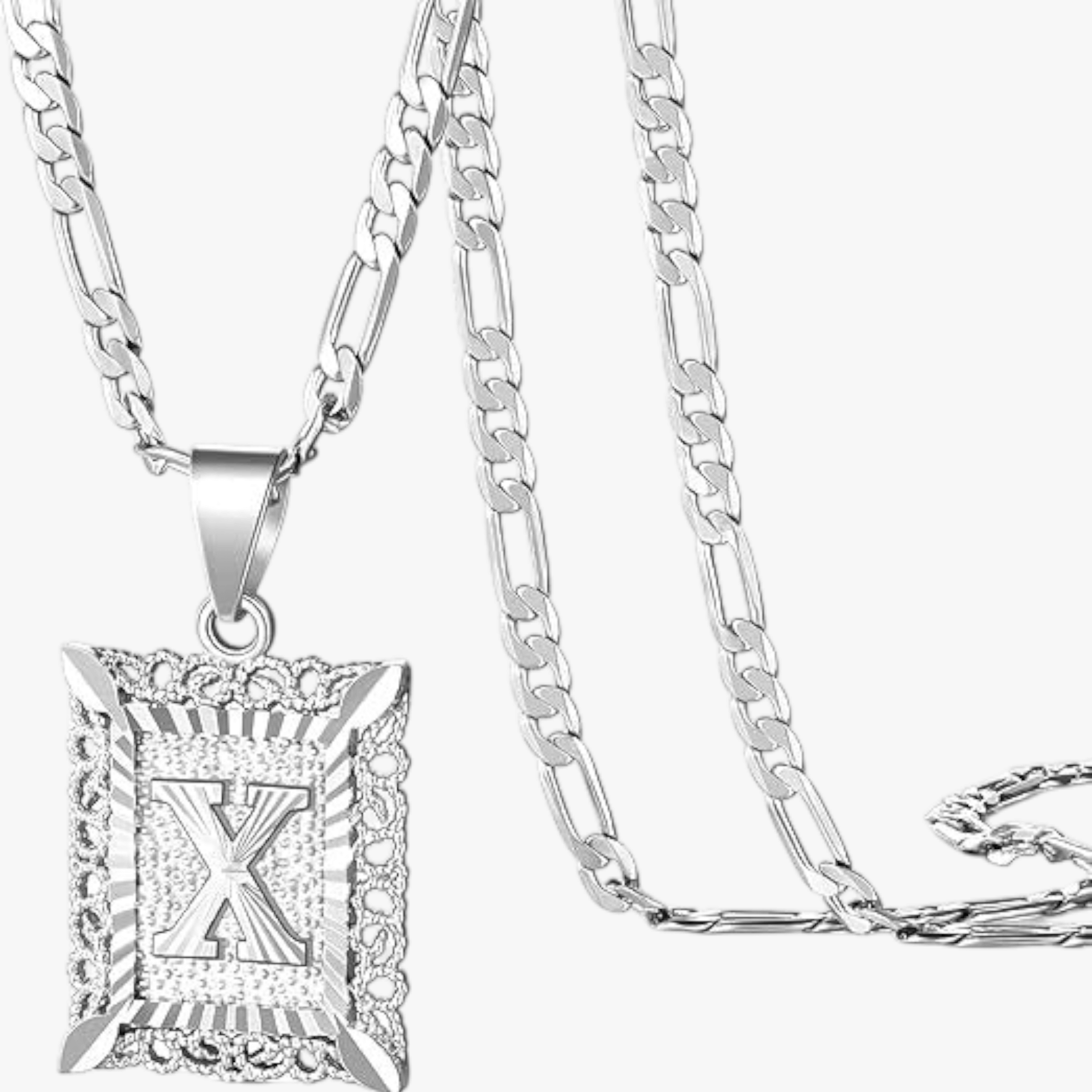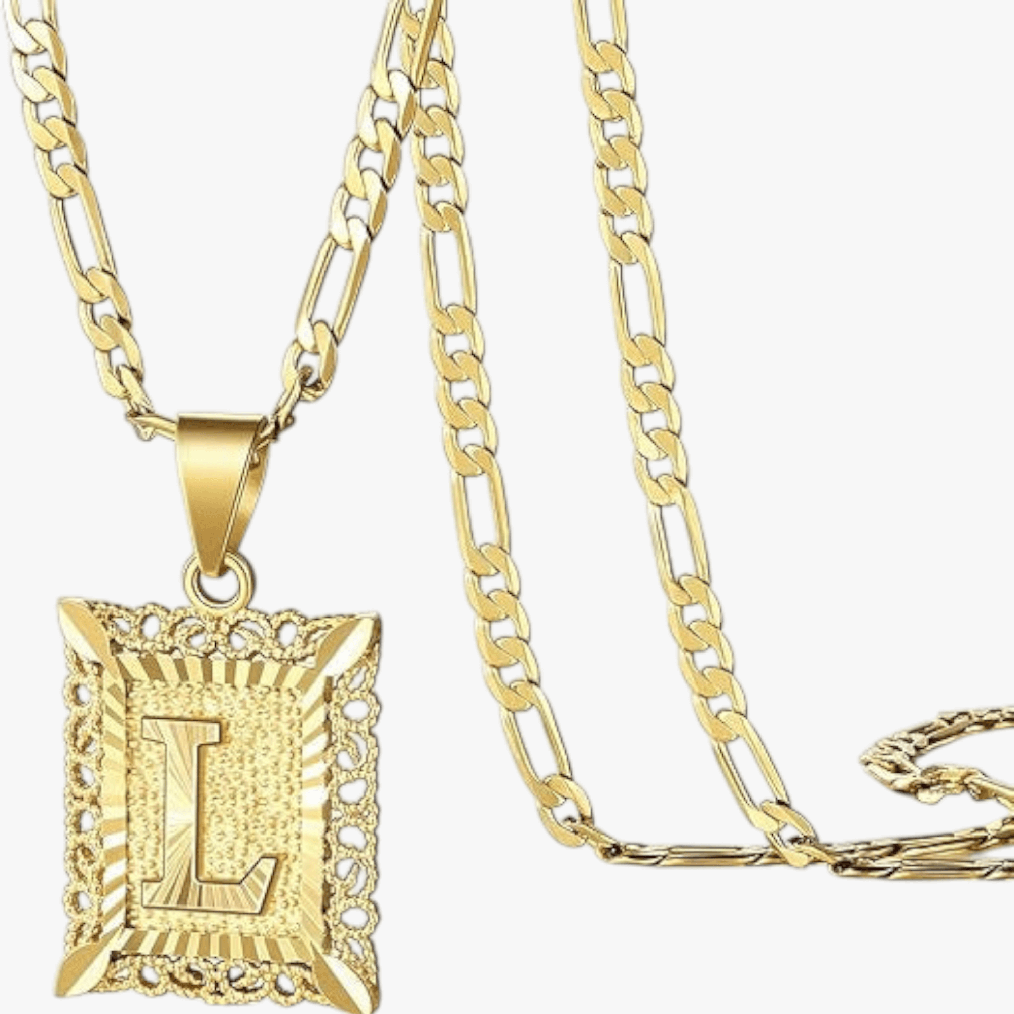 - Square letter pendant with textured border
