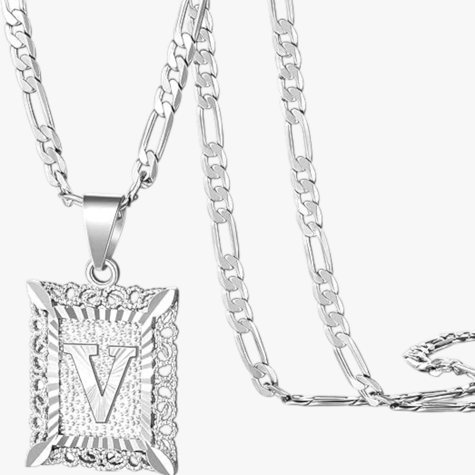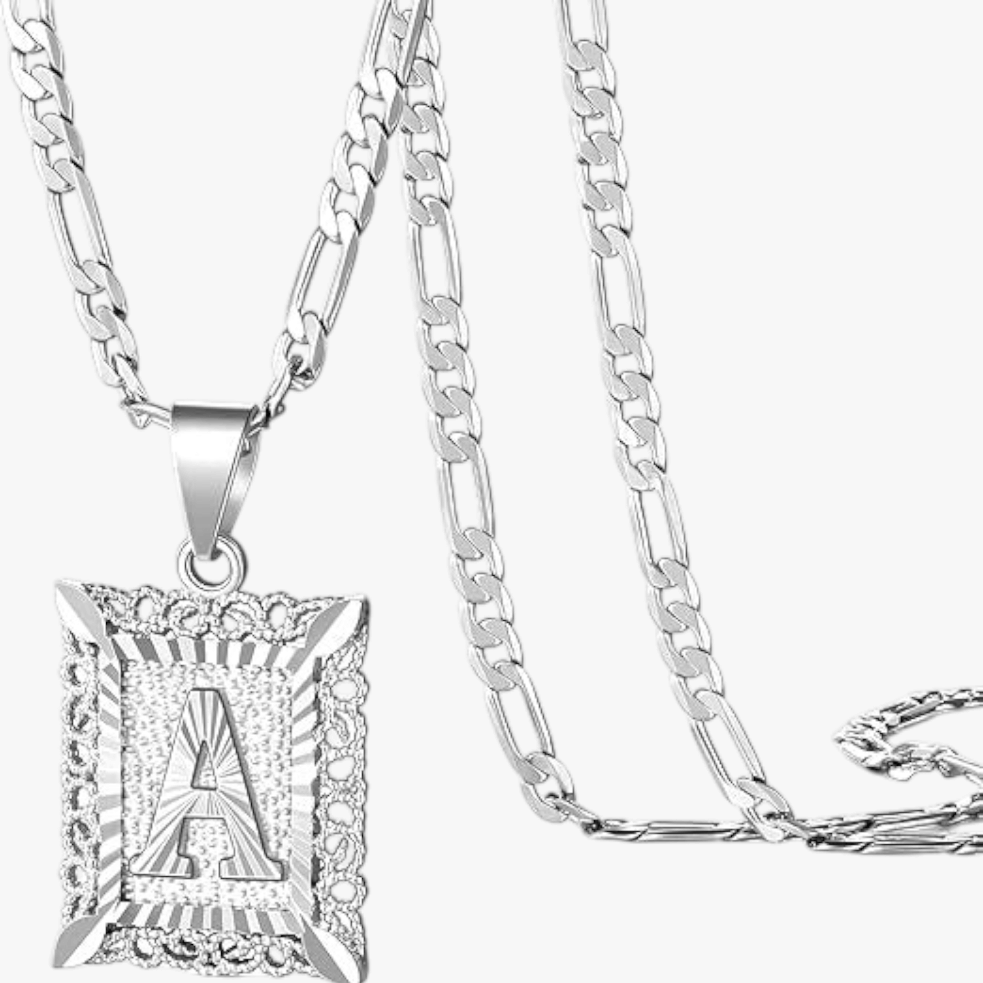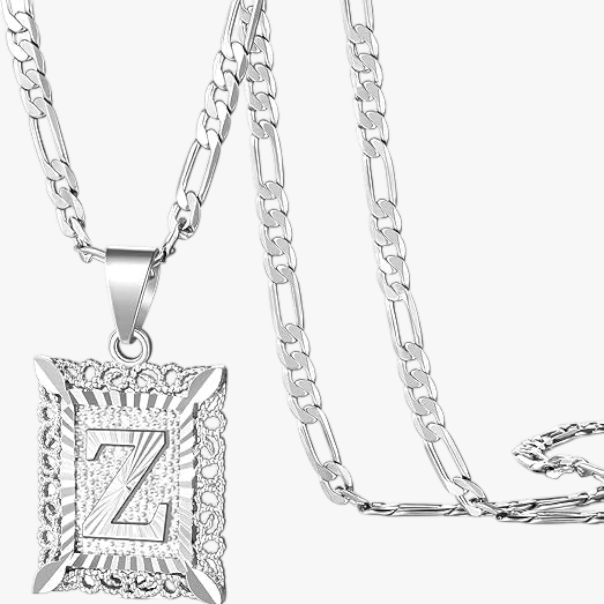 - Square letter pendant with textured border