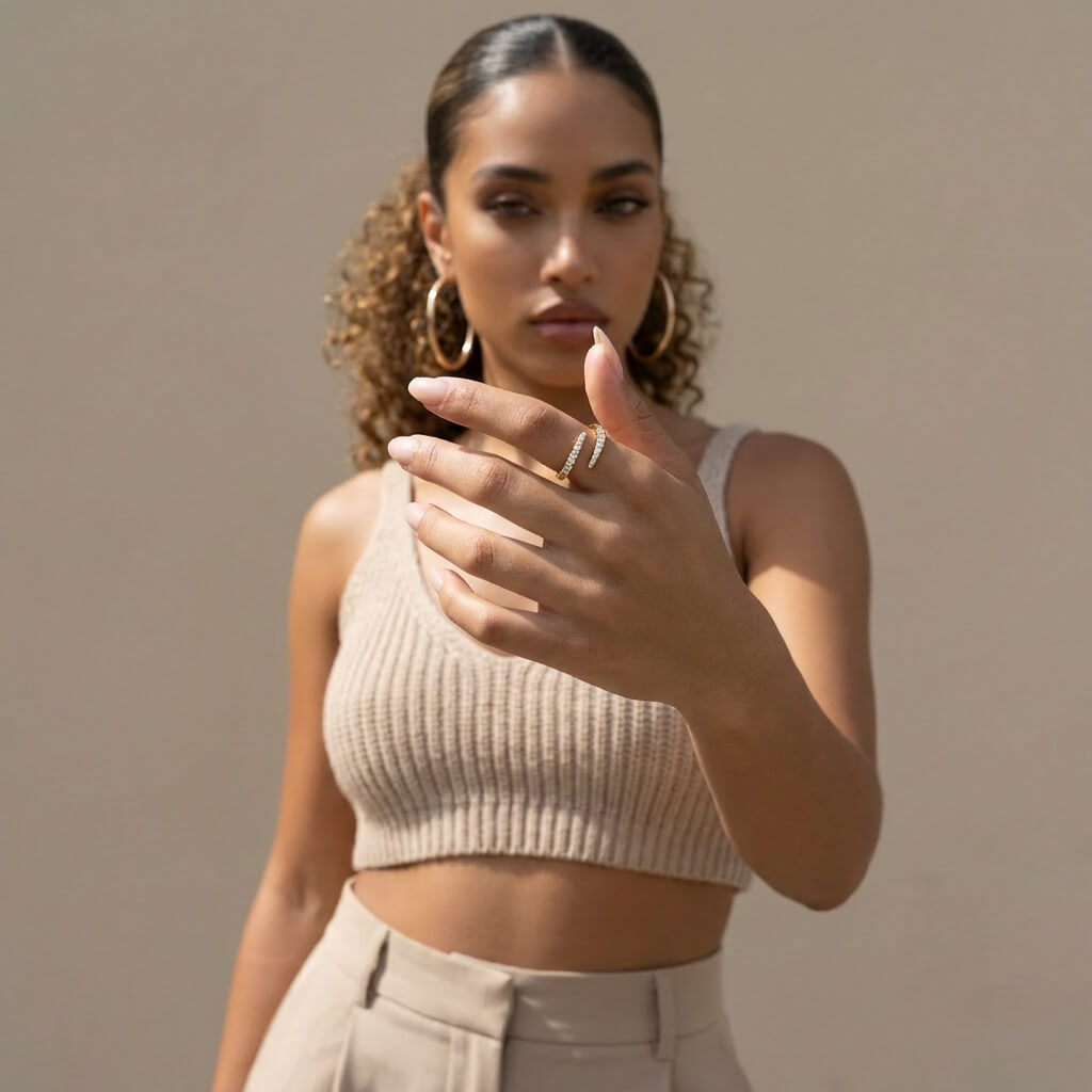 The Open Curve Ring is a modern statement piece designed with a subtle edge and effortless versatility. Featuring an open-ended silhouette accented with a row of AAAAA cubic zirconia, this ring delivers a refined sparkle that feels playful yet polished. Its sleek curve makes it ideal for stacking or wearing solo, offering a balanced look that complements both everyday styling and elevated outfits.
