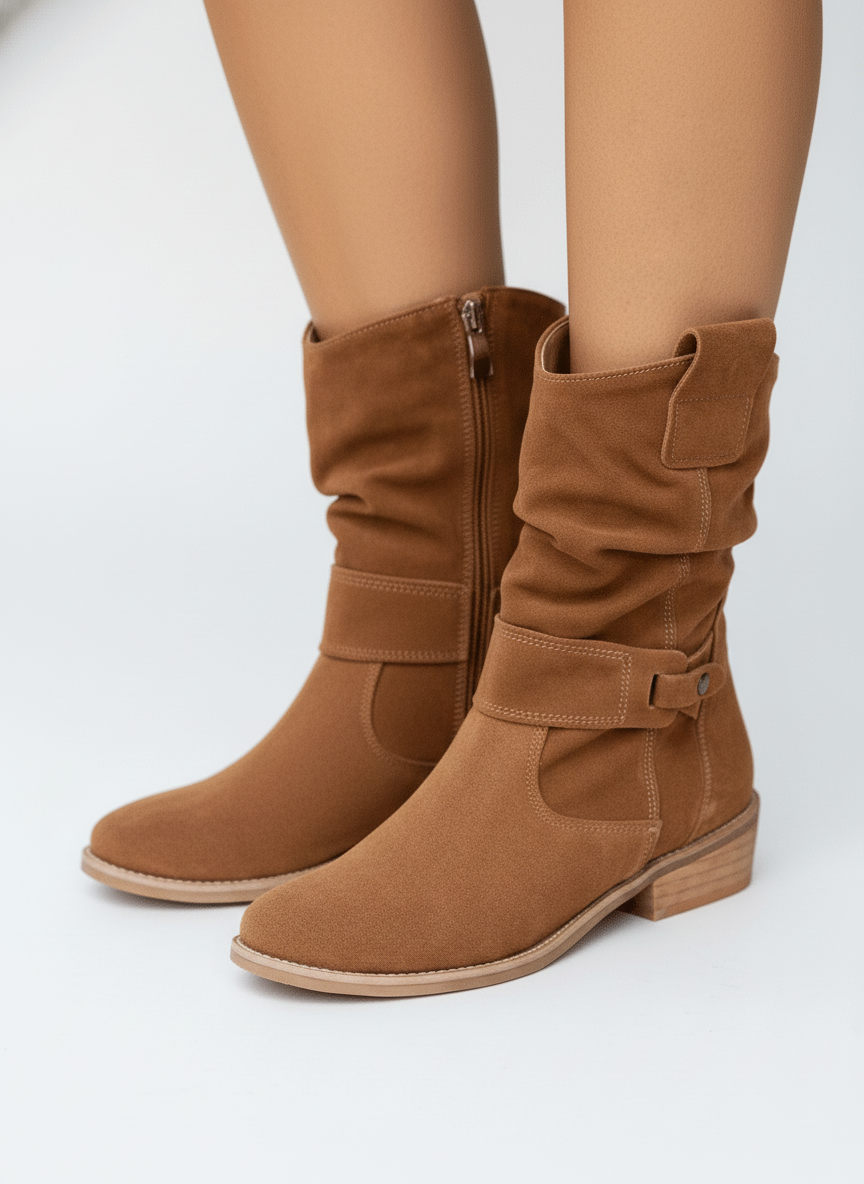 Women’s Ankle Boots – Low Heel Suede Design