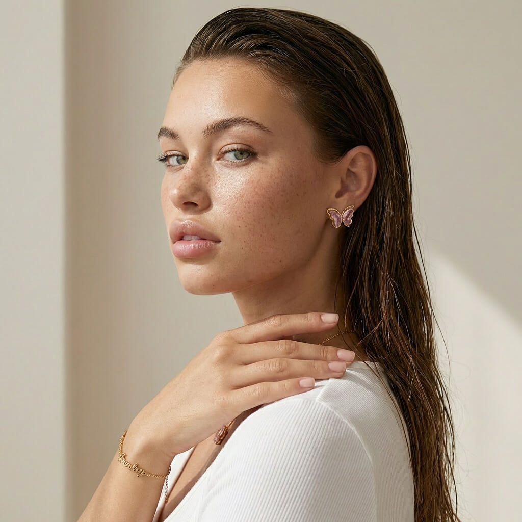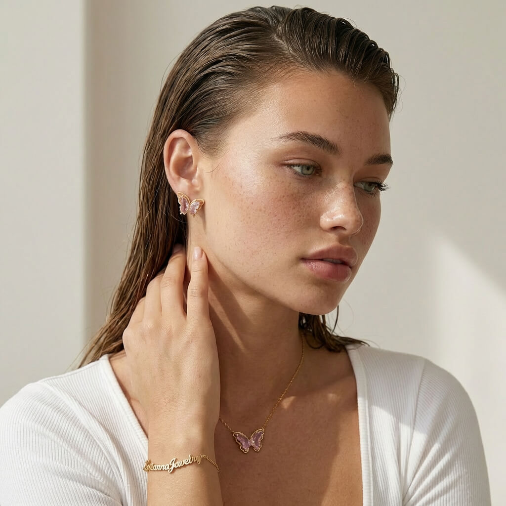 Romantic with a modern edge, the Butterfly Love Necklace & Earrings Set captures the feeling of lightness, transformation, and connection. The graceful butterfly silhouettes add a soft, feminine touch while keeping the look refined and wearable. Designed as a coordinated set, it’s perfect for Valentine’s Day gifting, special occasions, or moments when she wants her jewelry to feel meaningful yet effortless. A thoughtful gift that feels personal, polished, and made to be worn again and again.