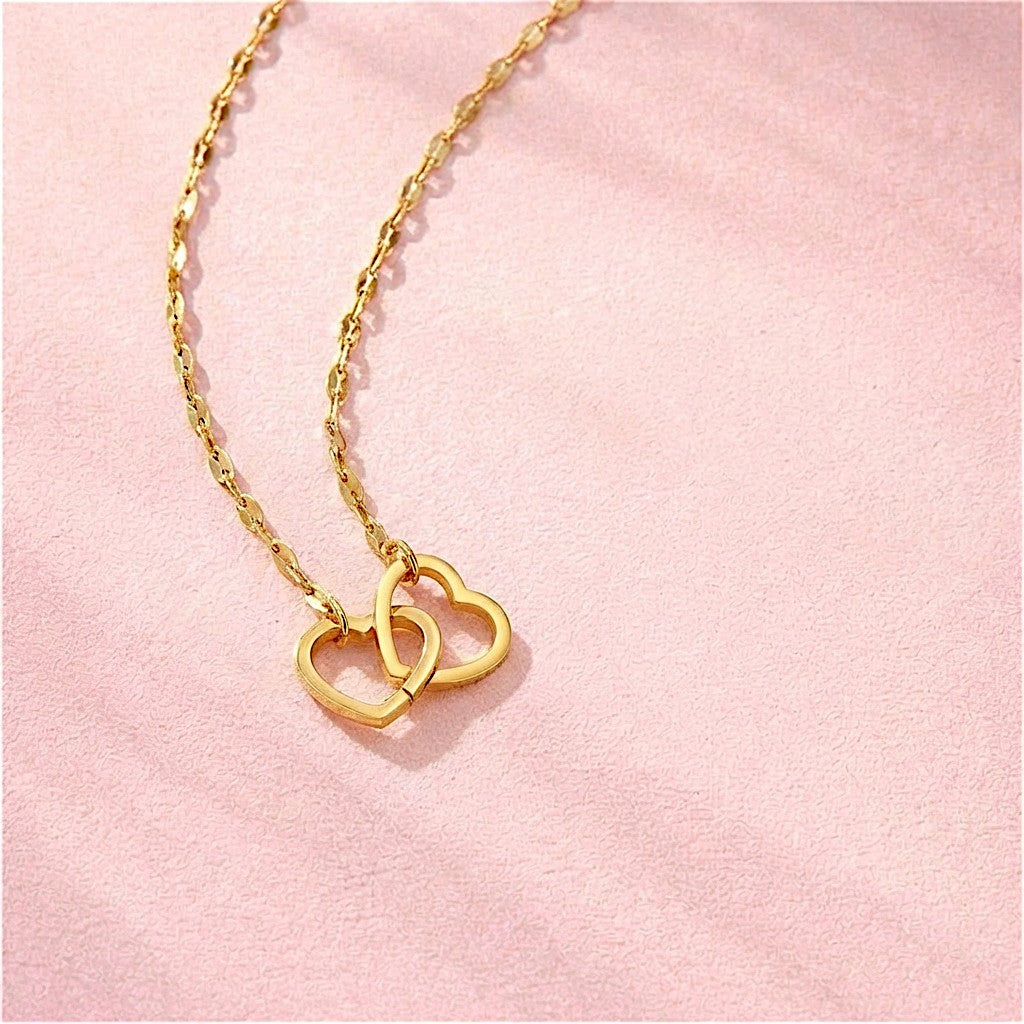- Minimalist double heart pendant design for versatile styling