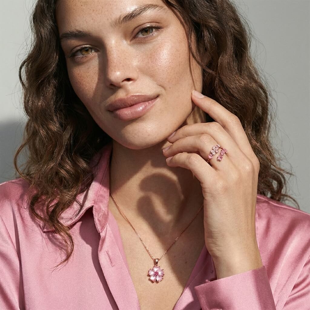 Soft, romantic, and effortlessly feminine, the Pink Cherry Blossom Branch Open Ring & Necklace Set is inspired by the gentle beauty of spring in bloom. The open ring design wraps delicately around the finger like a blossoming branch, while the matching necklace adds a subtle, graceful touch. Designed for everyday elegance with a romantic undertone, this coordinated set feels intimate and meaningful perfect for Valentine’s Day gifting or moments that deserve something quietly special.