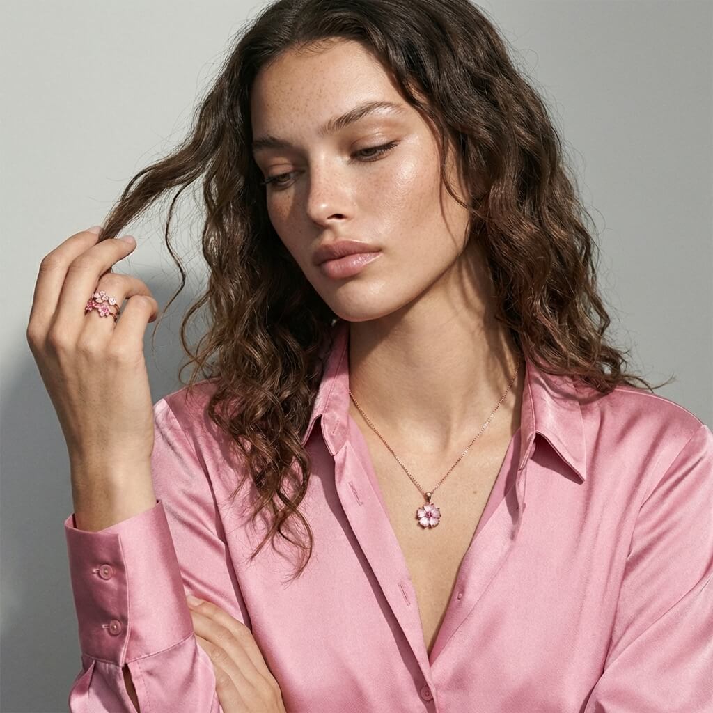 - Includes one pink cherry blossom branch open ring and one matching necklace
