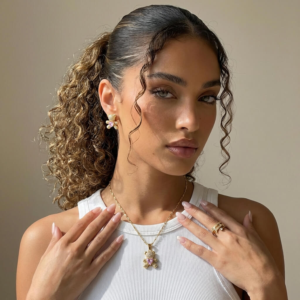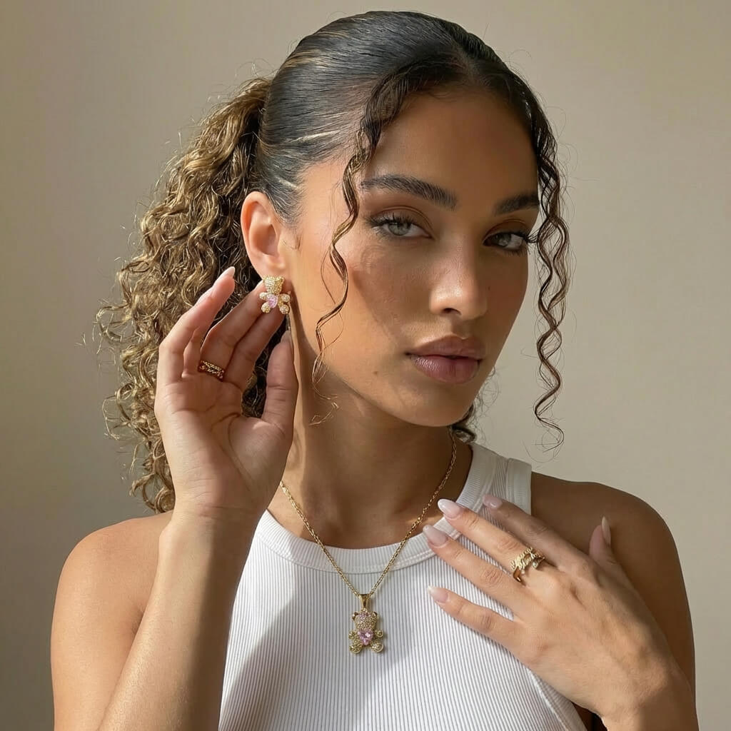 Playful yet irresistibly charming, the Sweetheart Bear Necklace & Stud Earrings Set is made to celebrate love in its most joyful form. Featuring an adorable bear motif holding a soft pink heart, this set brings a youthful sparkle that feels warm, romantic, and full of personality. Designed for everyday wear with just the right touch of whimsy, it’s a perfect Valentine’s Day jewelry gift that feels thoughtful, sweet, and easy to fall in love with.