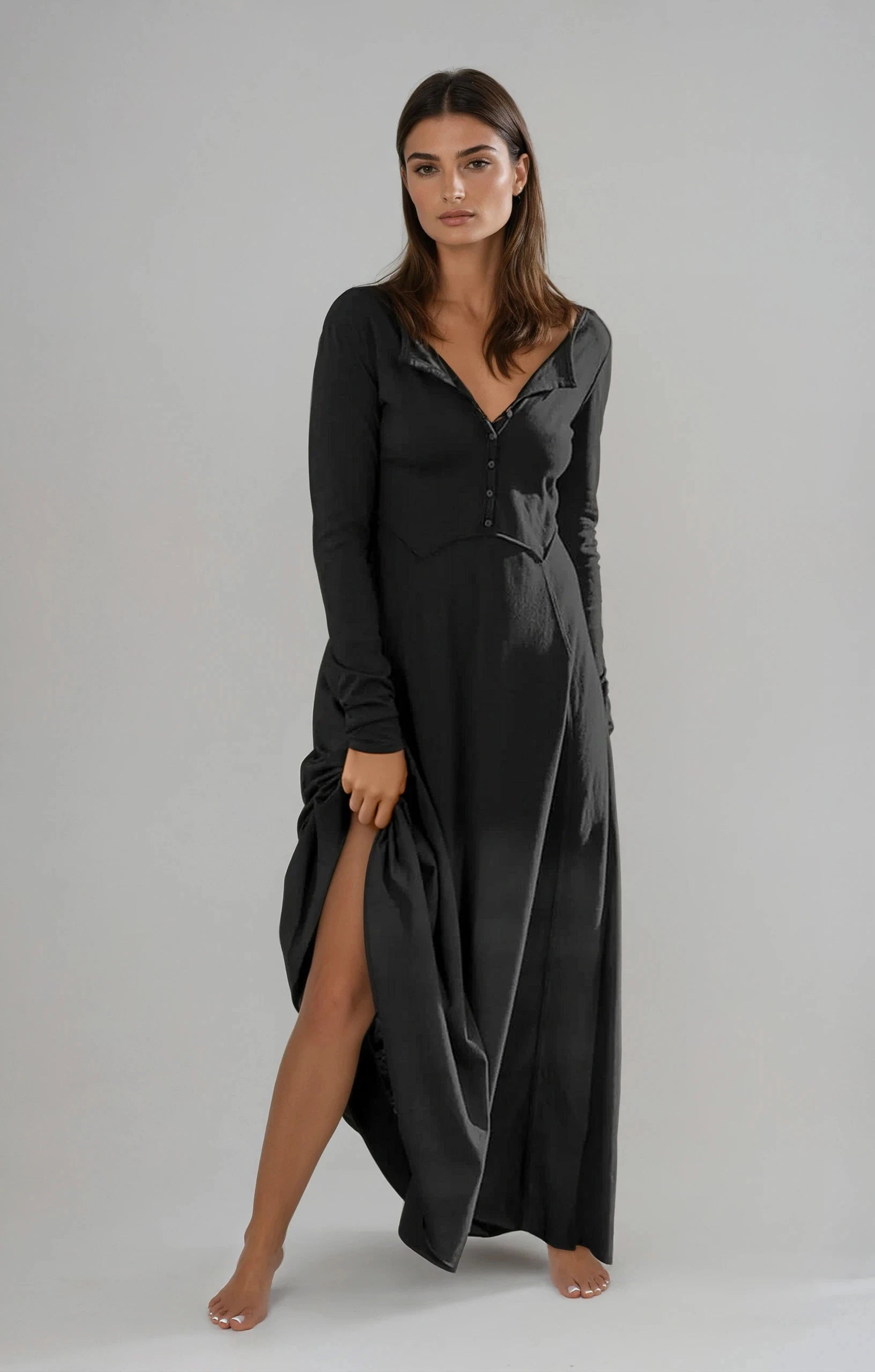 Solid Button-Up Maxi Dress