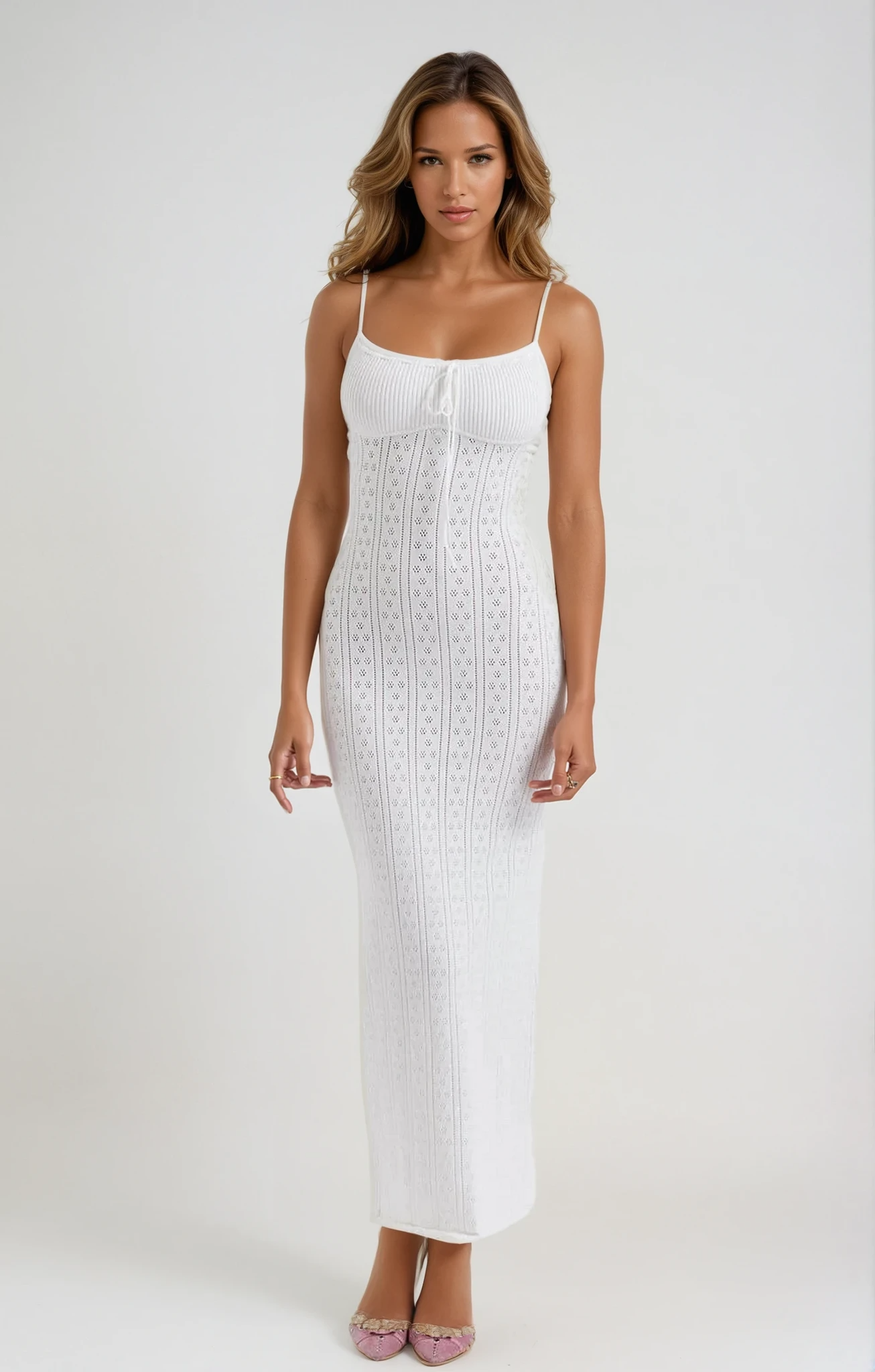 Elevate your style with this Plain Knit Maxi Dress, designed for effortless elegance and versatility. Featuring a soft knit fabric and a timeless silhouette, this dress is perfect for any occasion. Whether you're strolling on the beach, attending a garden party, or enjoying a casual day out, this piece adds sophistication to your wardrobe. Its classic white hue ensures a fresh, chic look that never goes out of style.